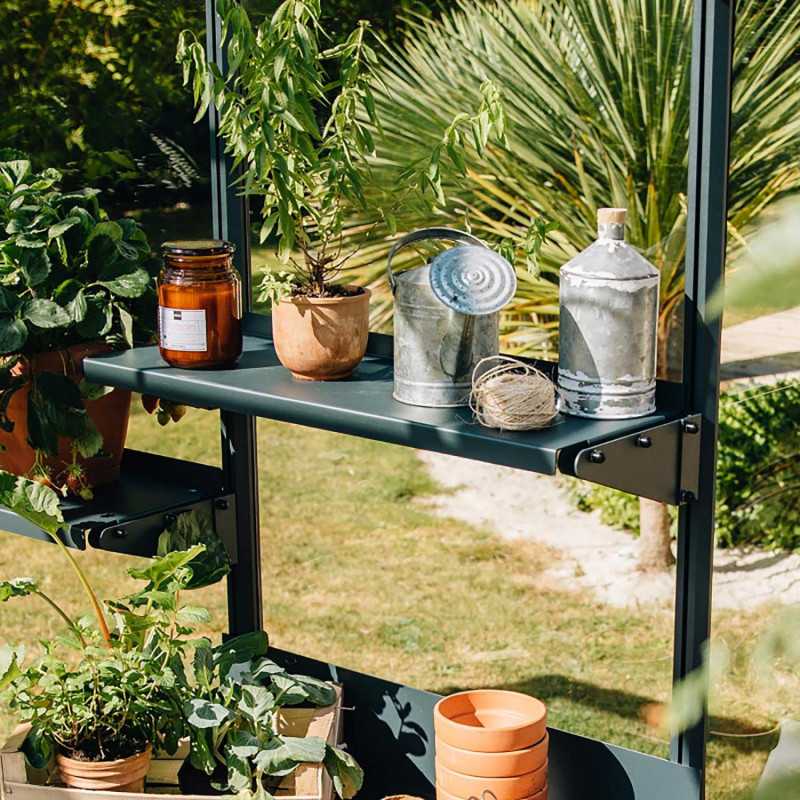 Etagère en aluminium fixée aux profilés de votre serre. Disponible en deux dimensions.