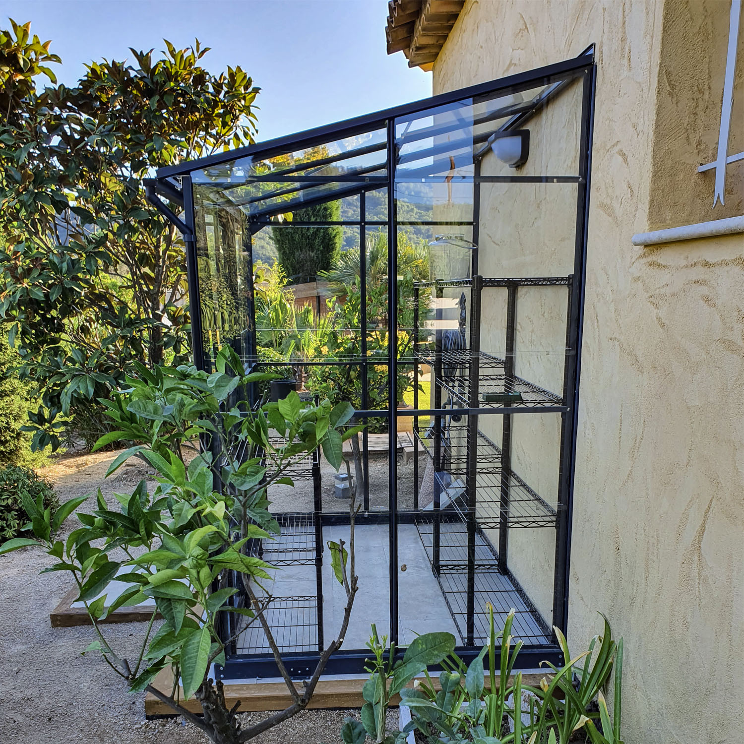 La serre en verre adossée LAMS Mélissa est équipée :