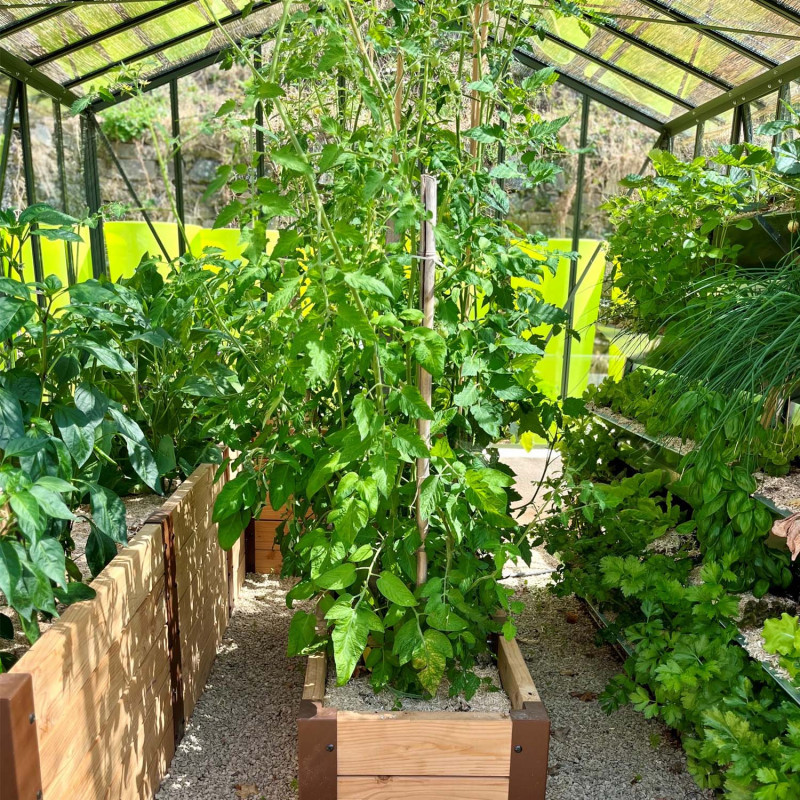 Le verre ne se décolore pas et est facile à nettoyer. Son poids et sa rigidité renforcent la stabilité de la serre (notamment dans les endroits venteux).