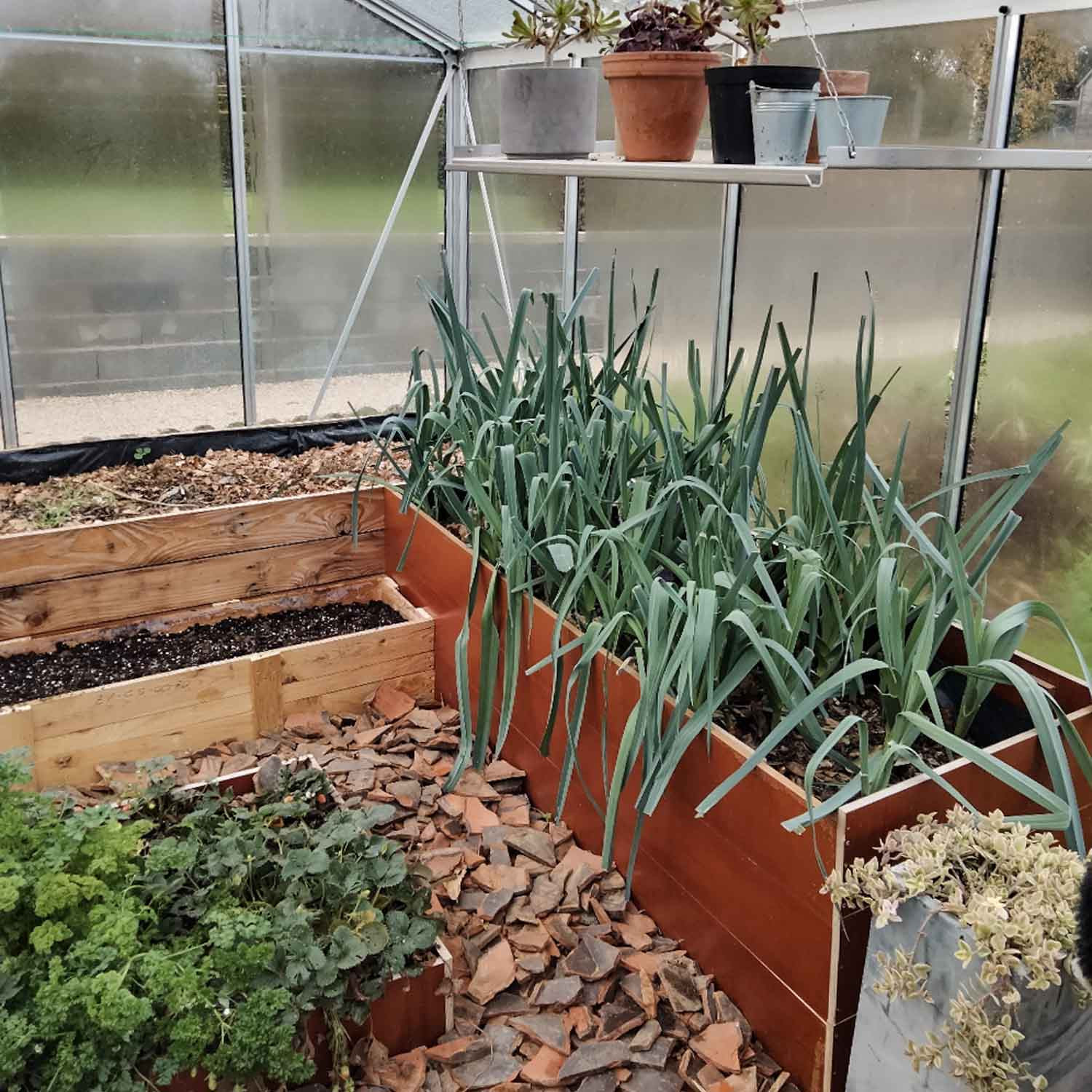 Les deux dernières solutions d’implantation vous permettent de cultiver vos légumes et plantes en pleine terre, à l’abri sous votre serre.
