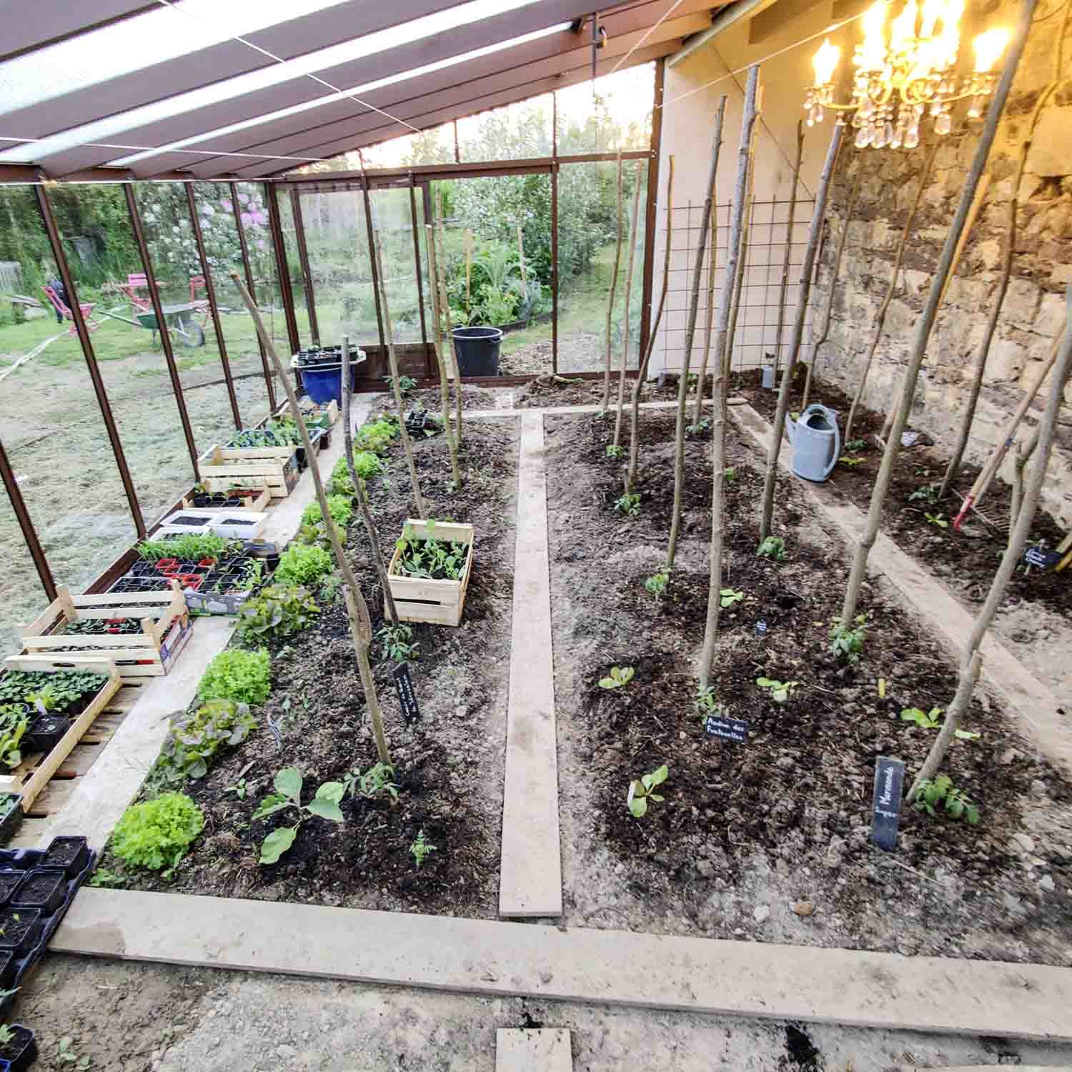 Les deux dernières solutions d’implantation vous permettent de cultiver vos légumes et plantes en pleine terre, à l’abri sous votre serre.